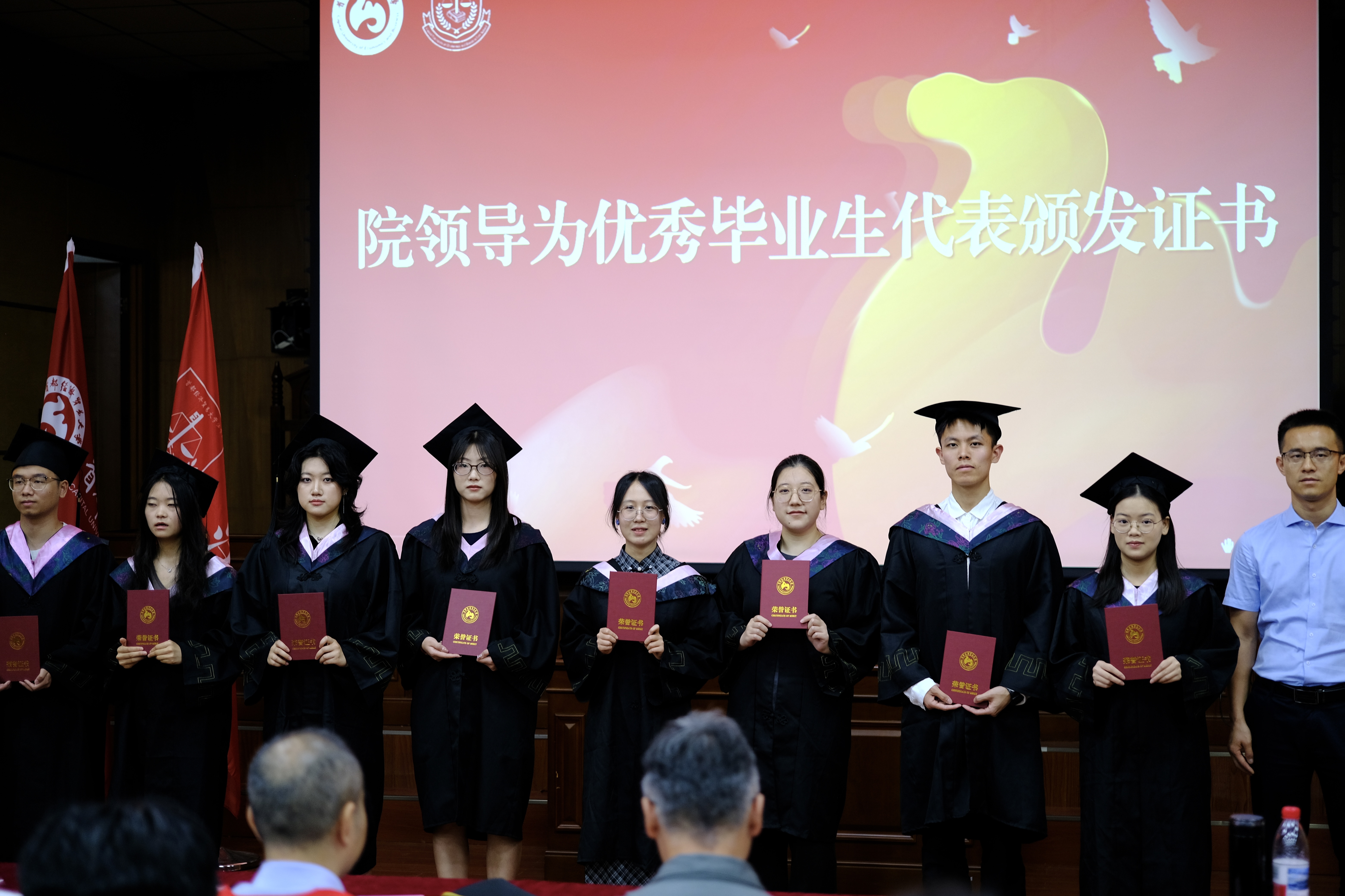 张益铭、尹少成为获得北京市、校级优秀毕业生颁发荣誉证书。